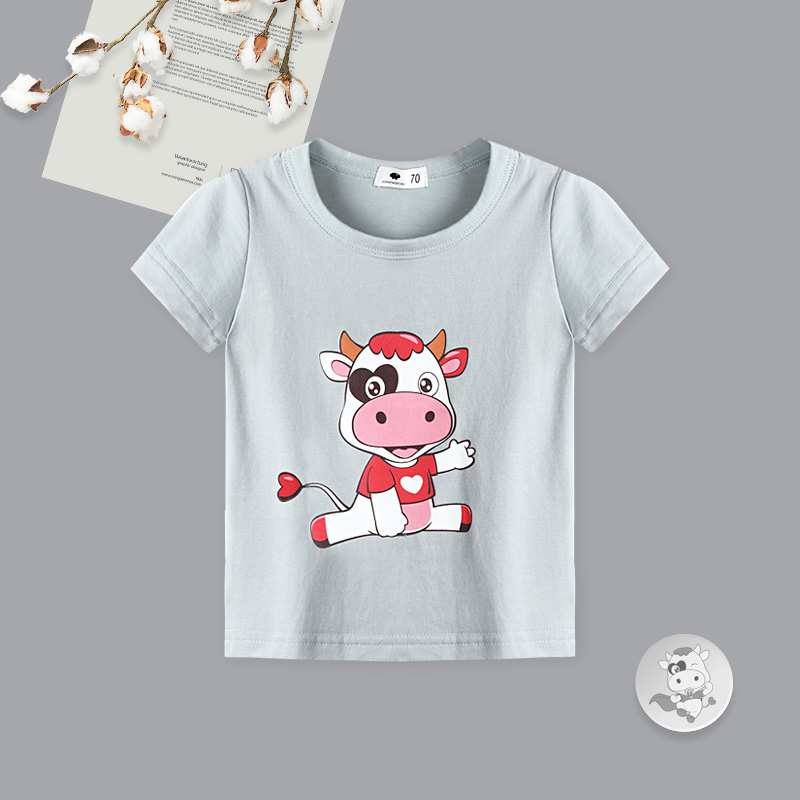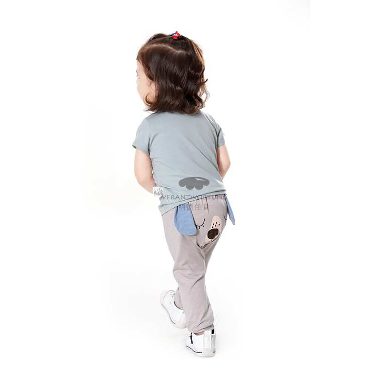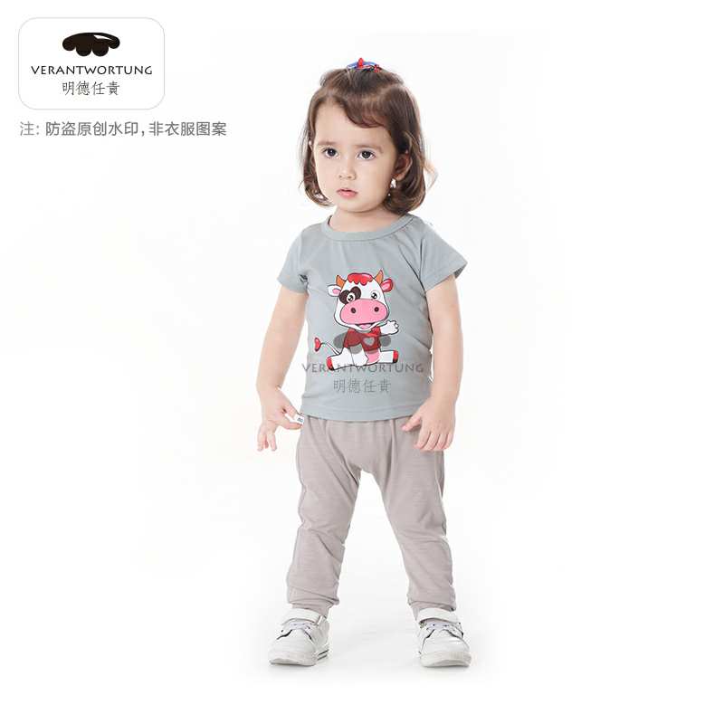 【2件】Verantwortung 明德任责 男女宝宝 百搭休闲跳跃小牛短袖T恤 浅绿色+呆萌大耳朵狗春秋款哈伦长裤 灰色