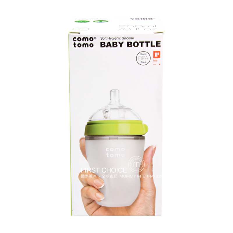 Comotomo 美国可么多么医用硅胶奶瓶 绿色独立装 250ml 3-6个月 海外本土原版
